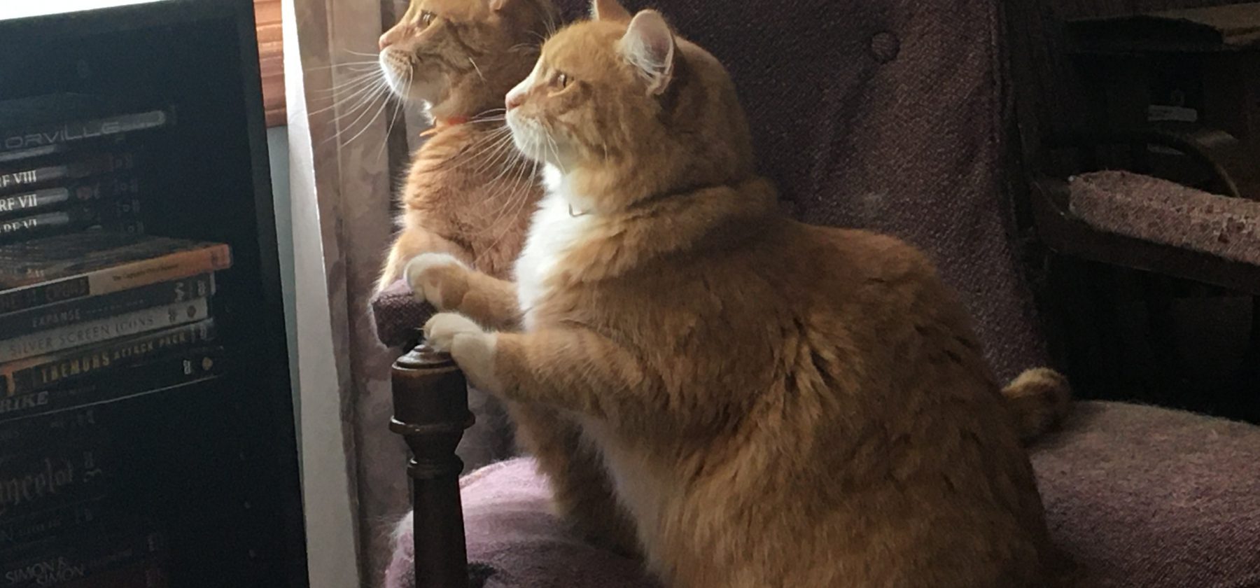 These are my boys, Larry and Jerry. They’re named for two of my writing mentors, Larry Niven and the late Jerry Pournelle. They keep my life interesting. Now they can keep my blog interesting.